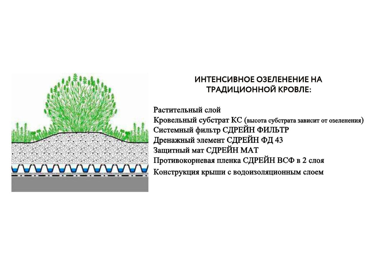 НАЗНАЧЕНИЕ: Дренажная водонакопительная мембрана СДРЕЙН ФД 43 используется в зонах озеленения для: - Аэрации кровельного покрытия - Устройства вертикального и горизонтального дренажа - Устройства проездов и стоянки пожарной техники, легковых и грузовых транспортных средств - Водоотведения под разделительными элементами благоустройства (бордюры, подпорные стенки, фундаменты под МАФ и освещение и т.д.) ТЕХНИЧЕСКИЕ ХАРАКТЕРИСТИКИ: - Высота элемента - 43 мм - Прочность на сжатие: до 830 кН/м² - Обеспечивает дренаж, аэрацию, водонакопление - Скорость потока водоотведения при уклоне 2% - 2,1 л/с*м - Монтируется встык, без перехлёста, коэффициент расхода 5% - Размеры листа: 1015x1430мм (1,451м²) УКЛАДКА МАТЕРИАЛА: - Листы дренажного элемента СДРЕЙН ФД 43 укладываются свободно без механического закрепления к основанию - Для временного балласта листов используются мешки с субстратом или щебнем - Укладка делается встык без перехлёста НЕ ДОПУСКАТЬ сплошного склеивания листов по длине фланца.